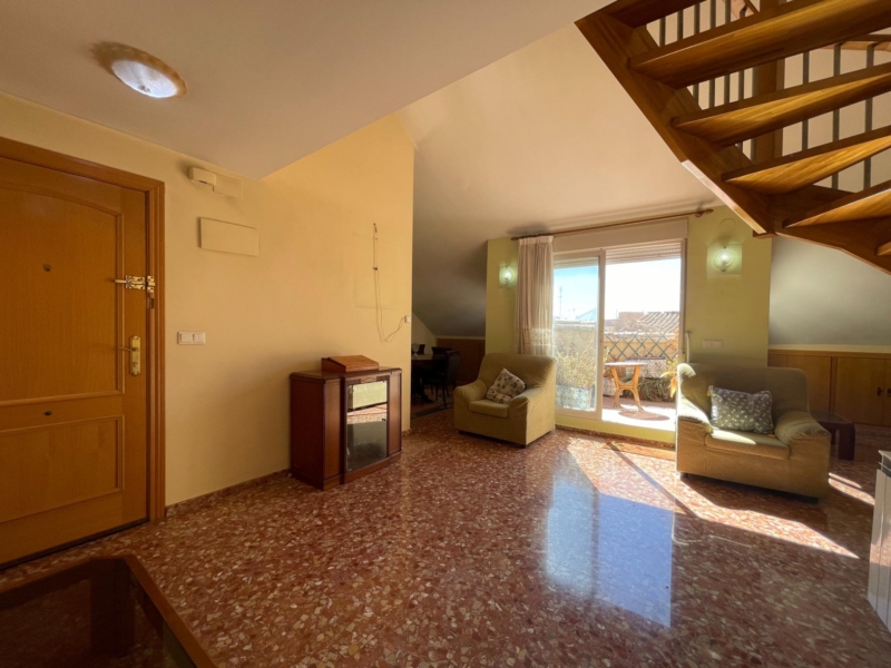 En la demandada calle Serrano Clavero de Requena se encuentra este espectacular ático dúplex,~una vivienda única que combina amplitud, comodidad y el privilegio de contar con dos terrazas~privadas que invitan a disfrutar de cada estación del año.~~Construido en 2005 y ubicado en una cuarta planta con ascensor, este inmueble ofrece 103 m² de~superficie útil (sin contar las terrazas), distribuidos con gran funcionalidad y acabados de calidad~en cada estancia.~~Al acceder, nos recibe un amplio salón comedor, dividido de manera natural en dos ambientes: la~zona de estar y el espacio de comedor. Desde aquí se accede a una terraza de 6 m², perfecta para~decorar con plantas o saborear un café al comenzar el día.~~El pasillo nos conduce a un baño completo con plato de ducha, seguido de una gran cocina~independiente, totalmente equipada, con mobiliario de madera y una caldera de gas natural que~alimenta tanto el agua sanitaria como la calefacción por radiadores.~~La zona de descanso en esta planta incluye una habitación doble con armarios empotrados, una habitación sencilla, también con armario, y una suite principal con baño privado y una ducha de gran formato.~~La planta superior, accesible por una bonita escalera de madera, se abre a una habitación triple~diáfana, un espacio versátil que puede destinarse a gimnasio, despacho, sala de cine o dormitorio~de invitados.~~Desde aquí se accede a la gran joya de la vivienda: una terraza de 36 m², amplia y luminosa, ideal para instalar un cenador, una carpa o una zona de barbacoa donde compartir inolvidables momentos con familiares y amigos.~~Un ático que combina calidez, diseño y funcionalidad, en una ubicación privilegiada de Requena.~Un hogar para disfrutar todos los días del año.~~—–~~La descripción del presente inmueble e imágenes tienen mero carácter informativo y en ningún caso carácter contractual, pudiendo ser modificados por la inmobiliaria comercializadora sin que ello implique responsabilidad alguna frente a terceros.~~En el precio de venta a público, esta propiedad NO incluye los gastos de adquisición (Notario, registro, gestión, honorarios, etc…).~