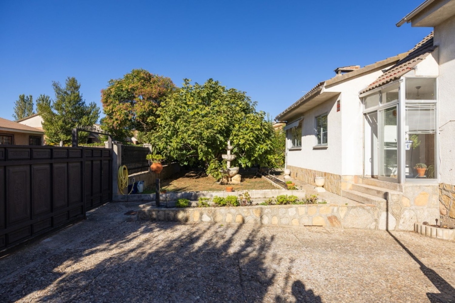 Ubicada en la calle Velázquez, la parcela cuenta con más de mil cien metros cuadrados, con jardín perimetral, piscina y un frente amplio a la vía pública. La construcción original, de 1981, se compone de una vivienda principal de 112 m² construidos y un garaje anexo de 23 m².