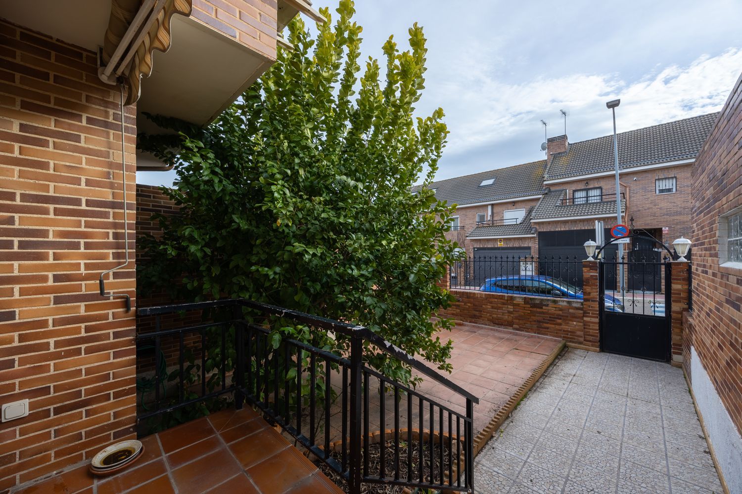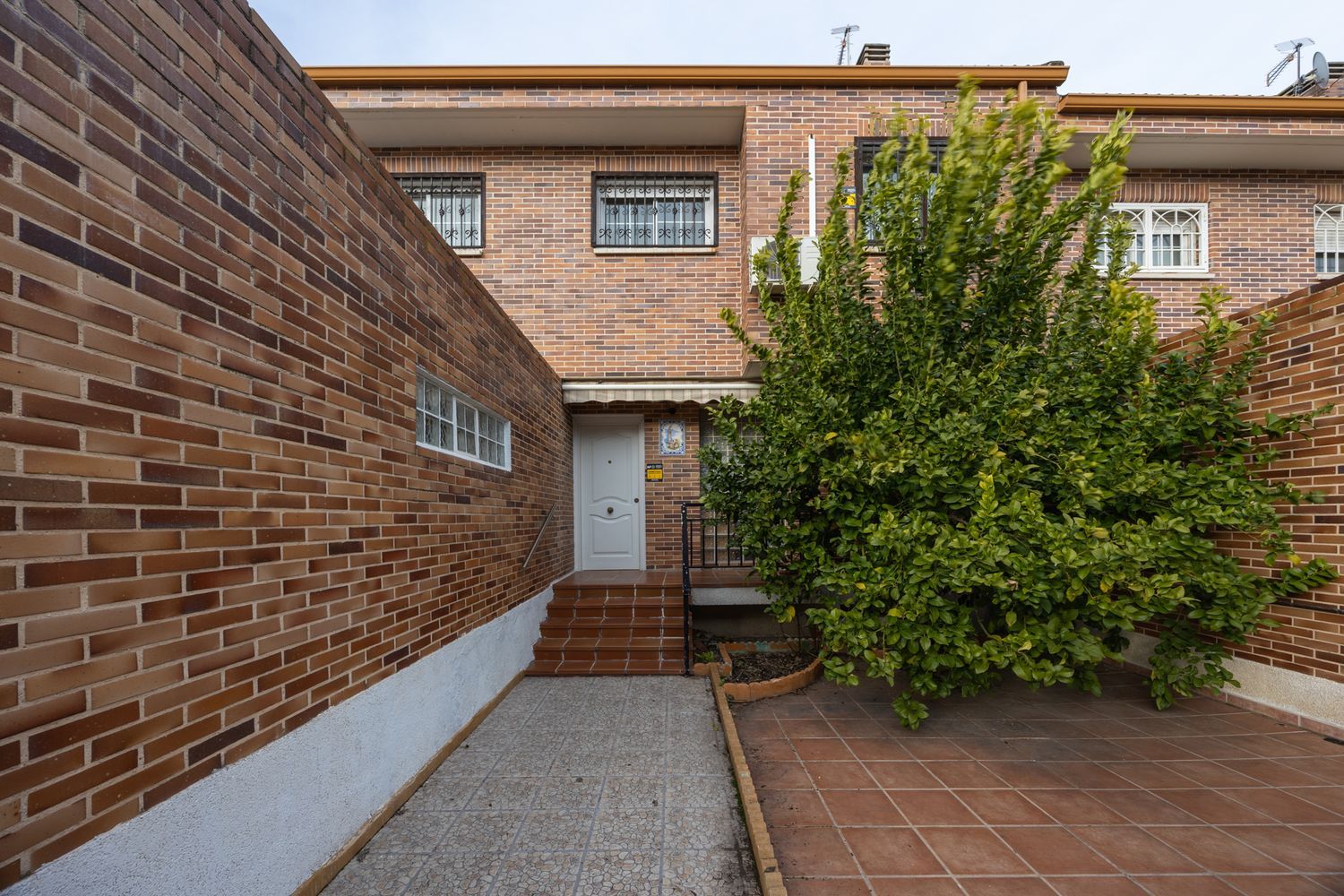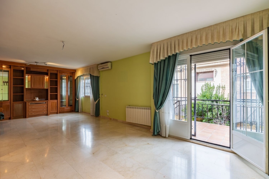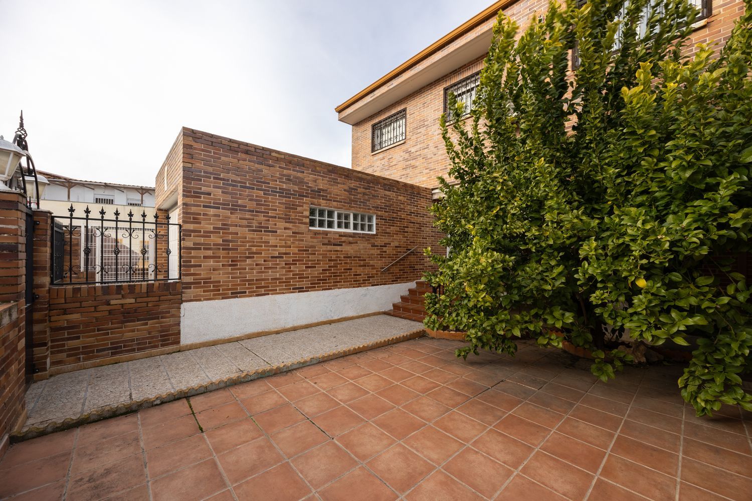 Un hermoso naranjo nos recibe antes de acceder al hall recibidor con armario empotrado y baño, amplia cocina y salón de 35 m2 con acceso a la terraza que nos lleva al patio trasero, donde disfrutar de la vida al aire libre.
