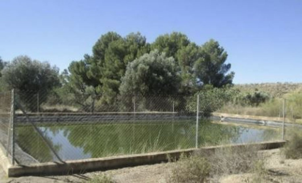 La finca posee una gran balsa donde se almacena agua de 24x19x4m.