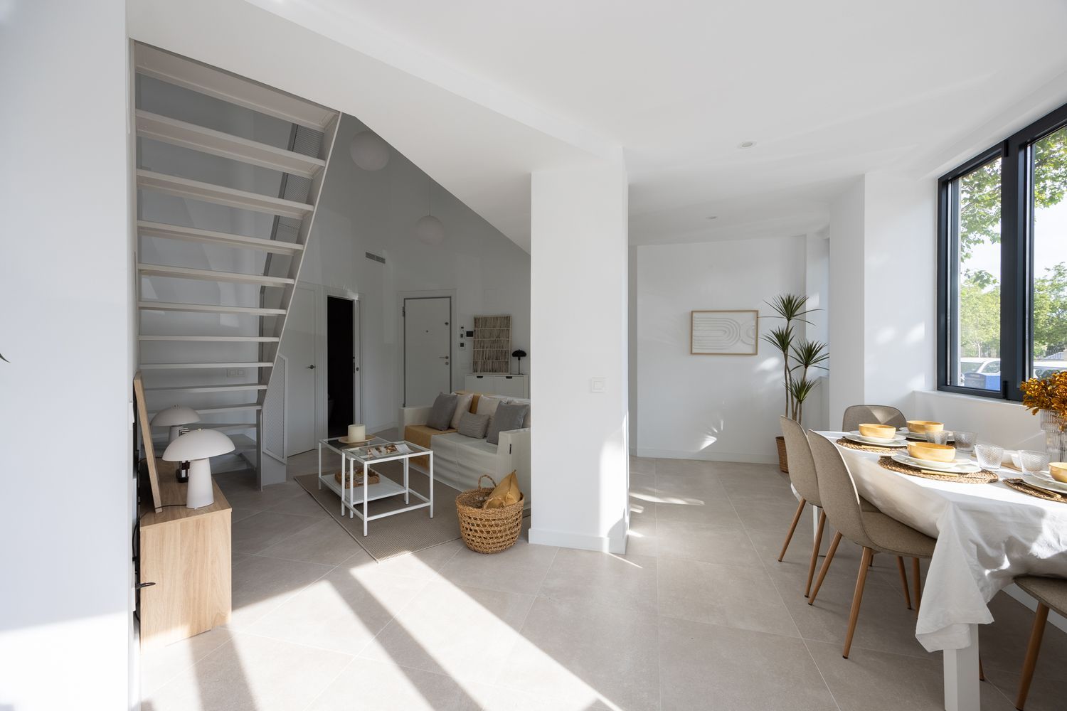 Las 5 viviendas cuentan con su propio portal de acceso desde la calle, moderno y funcional, lo que las dota de una gran exclusividad y privacidad con respecto al resto del edificio. Todas son de tipo dúplex, con un diseño singular que las hace únicas. La planta baja se destina a recibidor, distribuidor, gran espacio abierto para salón – comedor y cocina, con muchísima luz natural, baño o aseo y cuarto para instalaciones y lavandería.