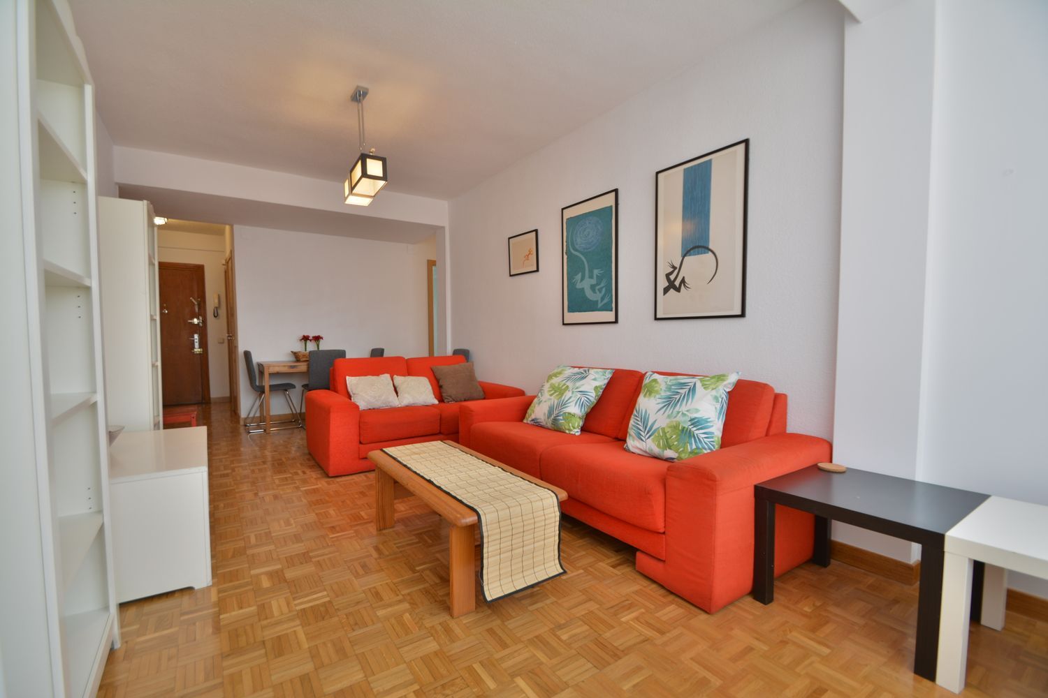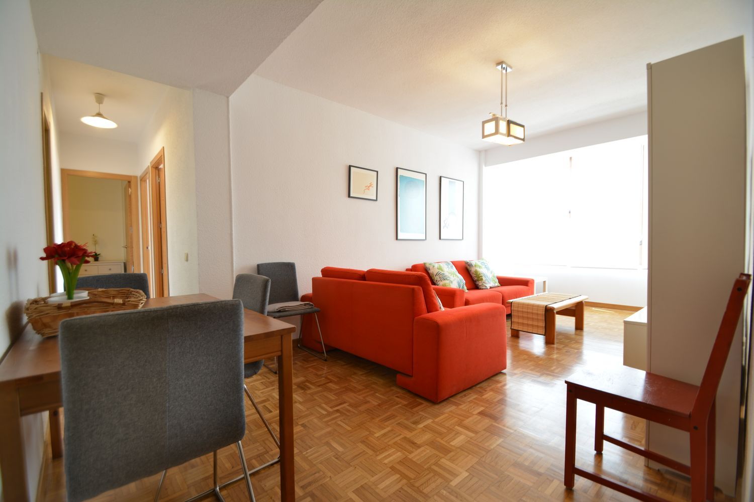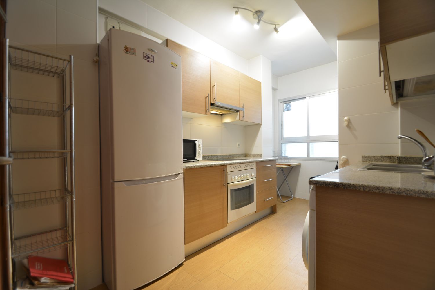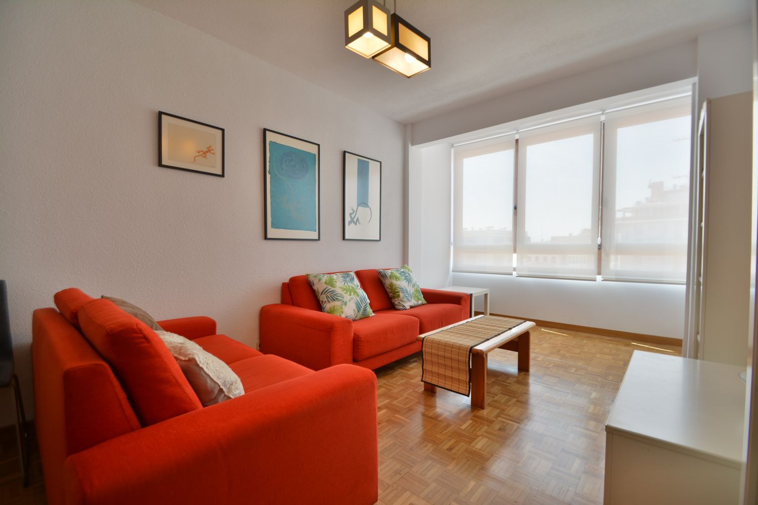 Piso exterior de 3 dormitorios y 2 baños, totalmente amueblado y equipado, cocina independiente, salón con terraza incorporada, en la planta 4ª de un edificio de 8 plantas del año 1971, con conserje, 2 escaleras y 6 vecinos por planta. 2 ascensores en cada portal.