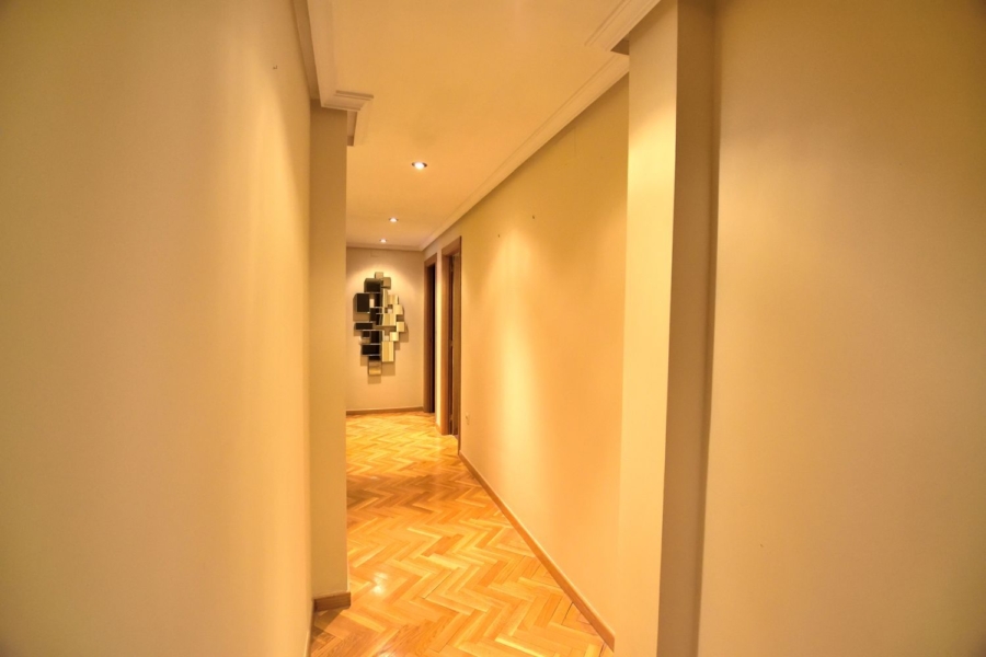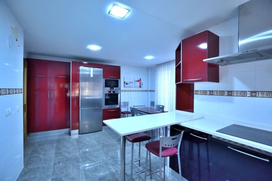 La cocina independiente está equipada con electrodomésticos de alta calidad y cuenta con un práctico office, ideal para tus desayunos. Además, la puerta de servicio facilita el acceso a la cocina, haciendo la vida diaria más cómoda. El dormitorio principal es un verdadero refugio, con baño en suite que incluye una relajante bañera de hidromasaje. Los tres dormitorios adicionales también cuentan con aire acondicionado y armarios empotrados, asegurando espacio y confort para toda la familia.