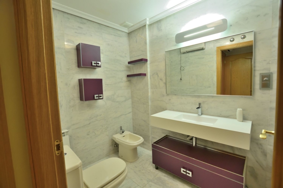 Los baños, elegantemente alicatados en mármol, ofrecen una ducha de hidromasaje en el baño secundario, perfectos para esos momentos de relax. El piso cuenta con calefacción individual por gas natural y ventanas climalit que garantizan un excelente aislamiento térmico y acústico. Además, disfrutarás de una plaza de garaje incluida en el precio y un amplio patio en el edificio.