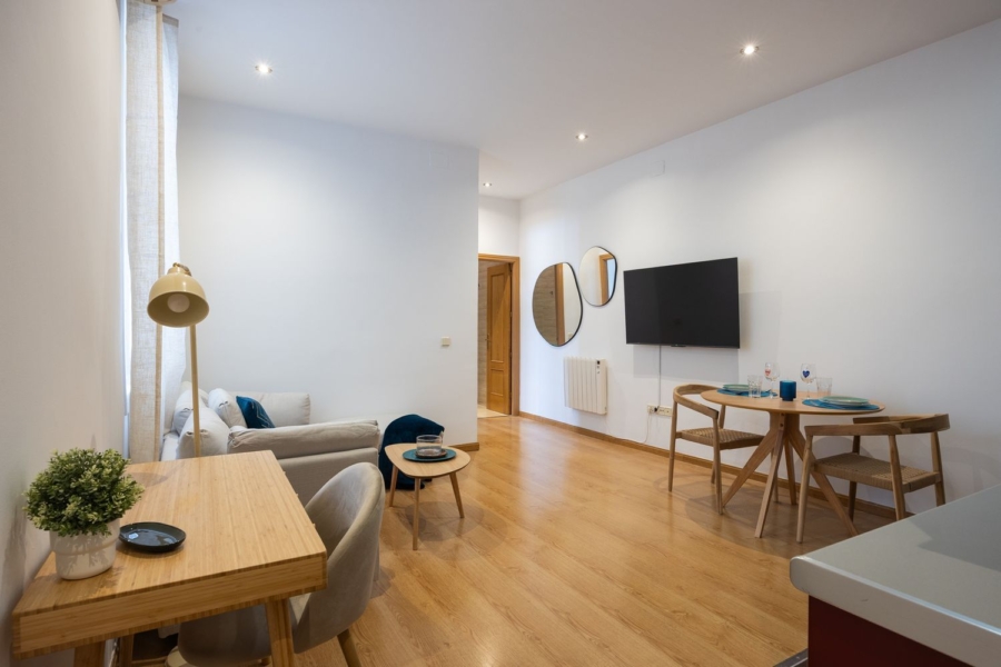 Apartamento de 1 dorm. totalmente reformado, amueblado y equipado en la calle Atocha, entre Antón Martín y la plaza Jacinto Benavente. Planta segunda interior, con ascensor, en un bonito edificio protegido del casco histórico del año 1886.