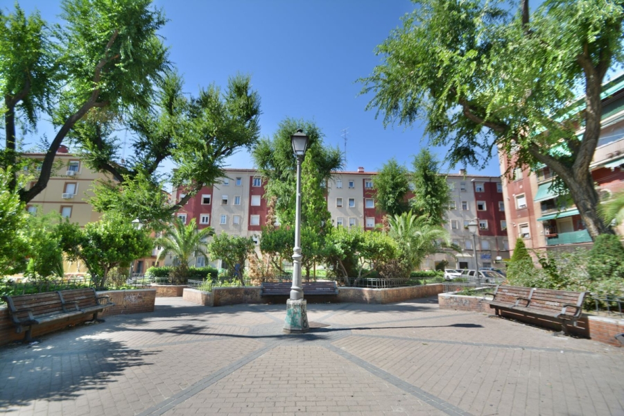 Distribución: Todas las estancias son amplias y con una distribución perfecta. Recibidor distribuidor de 10 m2, donde está ubicada la chimenea y un armario empotrado. Salón comedor de 17 m2 útiles y un dormitorio de 10 m2 con salida a terraza acristalada de 4 m2, con toldo, todo ello con orientación suroeste a la calle Juan Pascual de Mena. Dormitorio principal de 13 m2 útiles con orientación nordeste y vistas al parque de Domingo de Zaizita, al igual que la cocina de 9 m2, totalmente amueblada y equipada con electrodomésticos: lavadora, frigorífico, horno, microondas, campana extractora y cocina de gas con 4 fuegos. Un baño completo de 5,5 m2, con ventana a la calle, dotado de bañera con mampara de cristal templado, lavabo con encimera de mármol, mueble, espejo, inodoro y bidet.