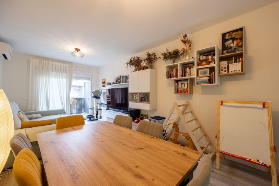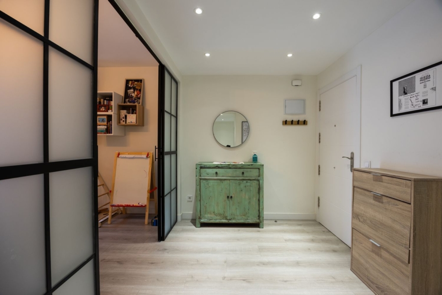 Consta de distribuidor conectado con el salón mediante puertas correderas acristaladas de estilo industrial que aportan luminosidad, amplio salón-comedor con acceso a la terraza, extraordinaria cocina con zona de office y cuarto de lavado. Tres dormitorios, el principal con baño en suite, dos cuartos de baño, además de una pequeña estancia concebida actualmente como trastero y que puede tener uso de vestidor, todos los dormitorios cuentan con armarios empotrados.
