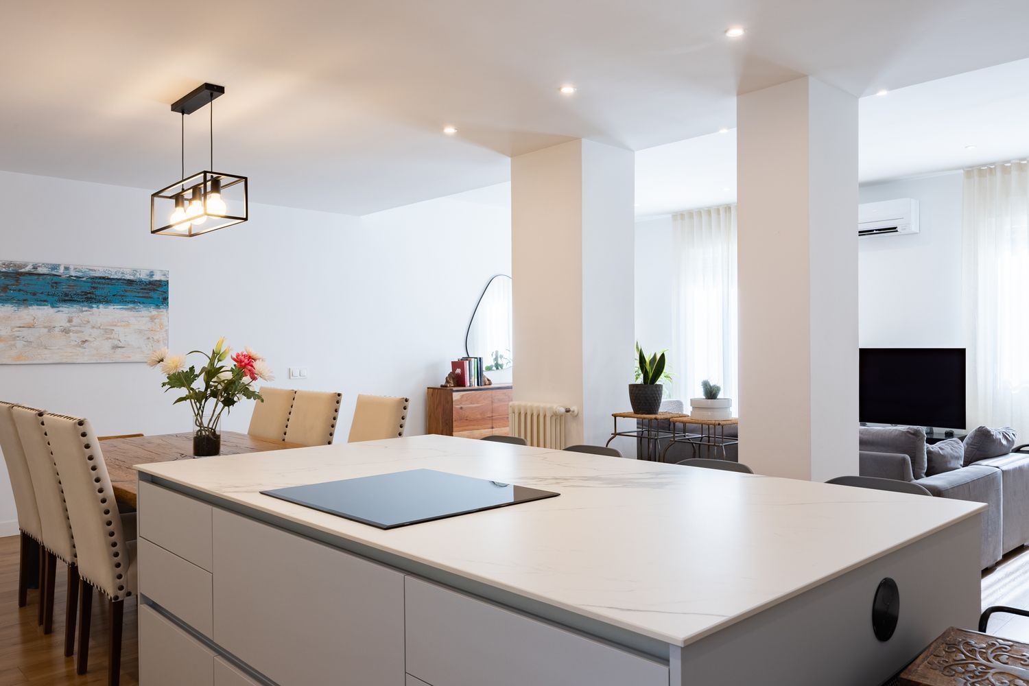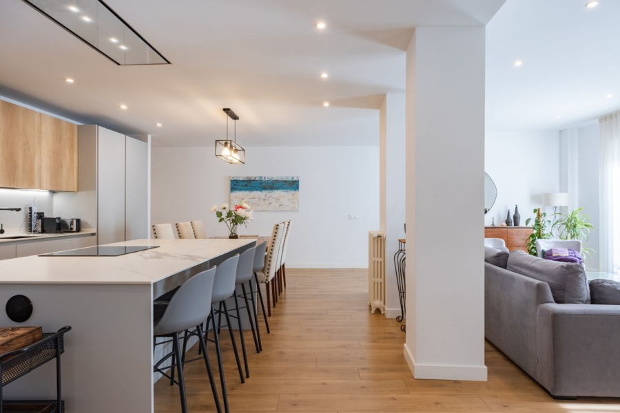 Al entrar podrás notar la amplitud de los espacios a través de los más de 50m2 de salón-comedor-cocina iluminados por 2 ventanales que dan al oeste.