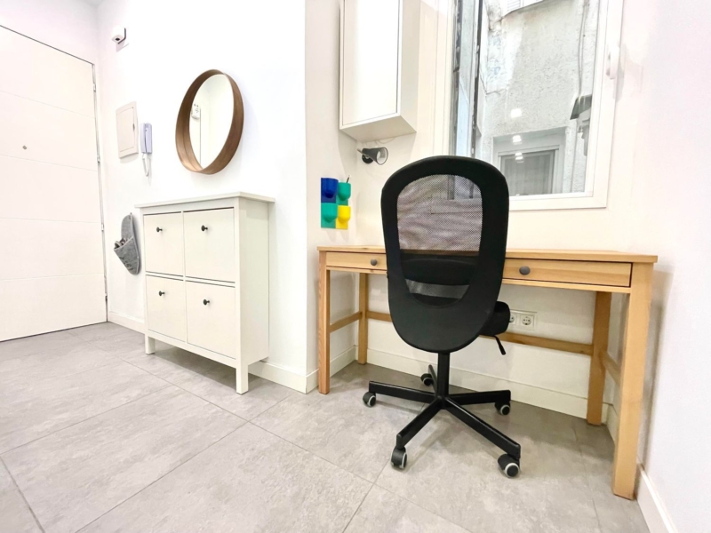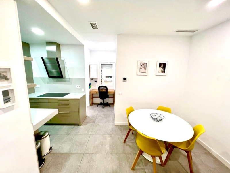 Amplio apartamento reformado, amueblado con 2 TV, 1 dormitorio independiente, 1 baño con ventana, cocina con primeras calidades horno, frigorífico, lavadora, microondas. Recibidor con mesa de trabajo en la ventana del recibidor, salón con 2 ventanas, sofá-cama, bomba de frío/calor.