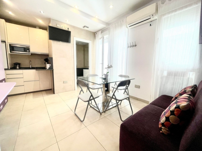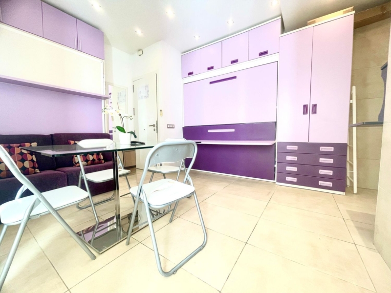 Impecable estudio con acceso a patio, reformado, amueblado, 1 baño. Frío / calor. Tv, menaje, cama grande abatibles, camas individuales abatibles. Lavavajillas, lavadora-secadora, frigorífico, etc.