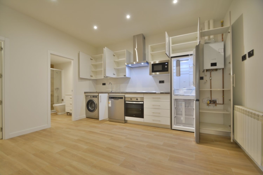 Vivienda reformada exterior, en edificio rehabilitado en el corazón de Malasaña. Calle Espíritu Santo, 29. En pleno barrio de Malasaña, junto a la Plaza de Juan Pujol. Edificio antiguo rehabilitado integralmente en 2017. Situada en planta baja, con altura de entreplanta, exterior con 3 ventanas tipo balcón a la calle Santa Lucía (orientación Sureste).
