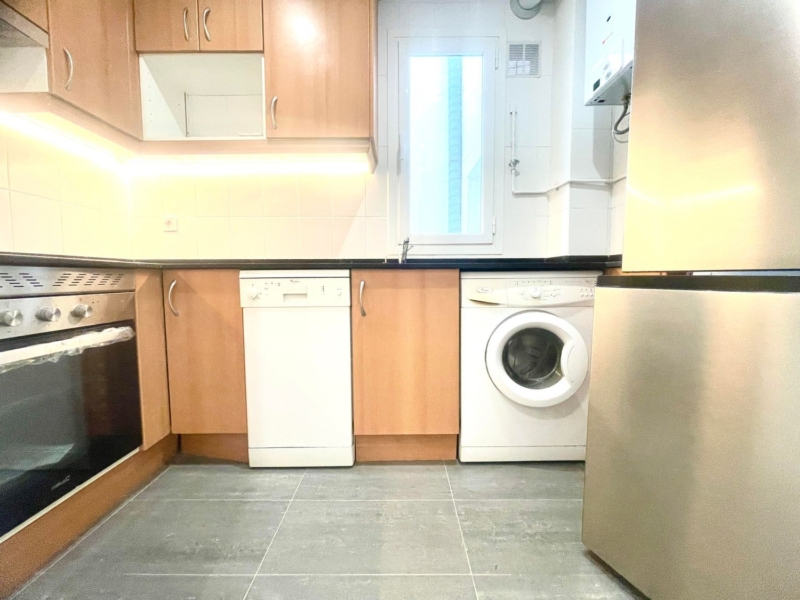 Amplio piso luminoso con 2 dormitorios, 2 baños, armarios empotrados, calefacción central con contadores independientes, calentador de Gas Natural para el agua caliente, aire acondicionado. Portero.