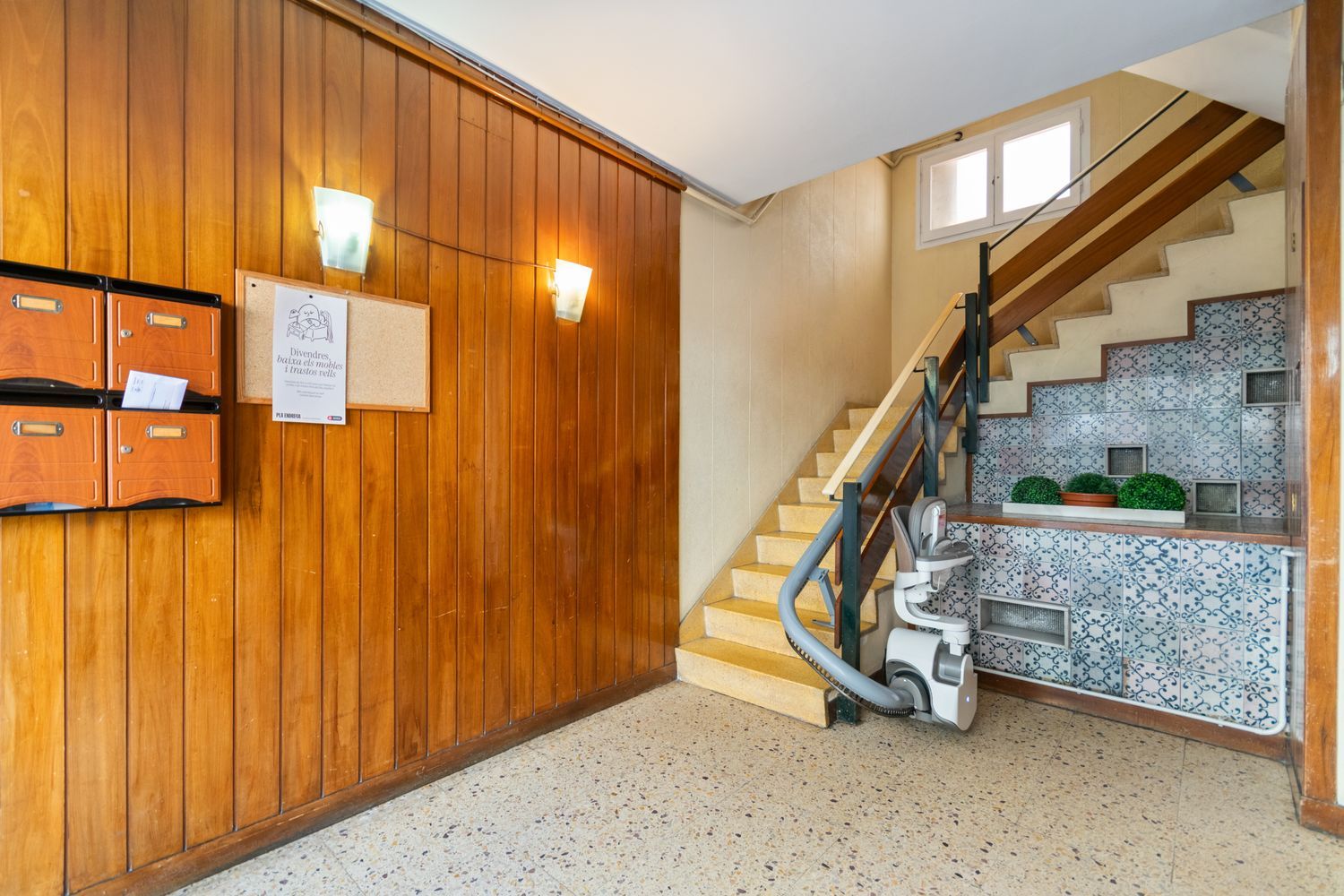 La comunidad ha instalado silla salva escaleras facilitando el acceso a las plantas del edificio al no tener ascensor.