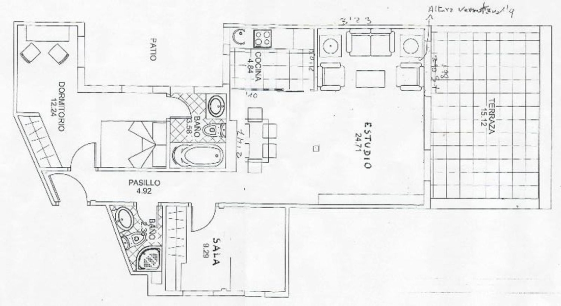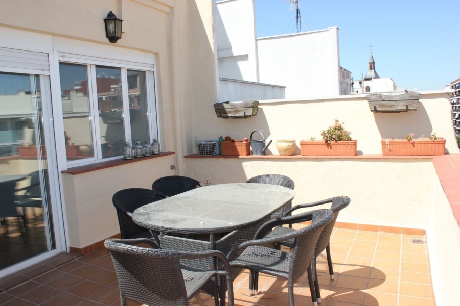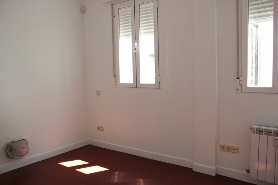 Ático en la calle Fuencarral enfrente del cine Proyecciones. Dos dormitorios, dos baños, cocina amueblada. Uno de los baños está incorporado en el dormitorio principal. La terraza es prácticamente cuadrada, de 15 m2 y cuenta con unas vistas espectaculares.