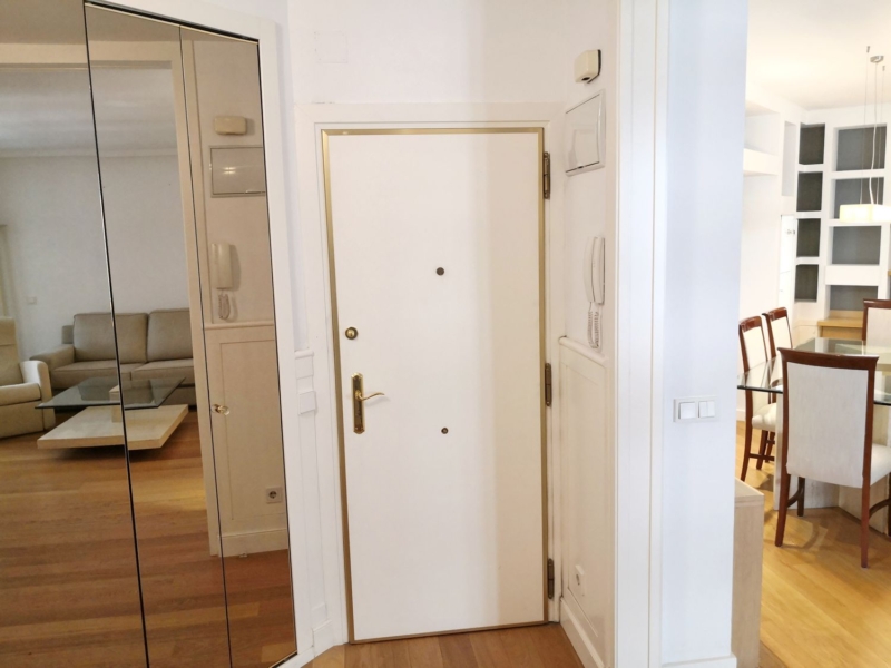 Armarios revestidos lacados en blanco de gran capacidad. Suelos de tarima de gran calidad. Puertas lacadas en blanco. Paredes lisas. Ventanas oscilobatientes de PVC con dobles cristales de aislamiento térmico y acústico. Persianas de aluminio. Agua caliente y calefacción individual por gas natural. Puerta acorazada con llave de servicio. Caja fuerte.