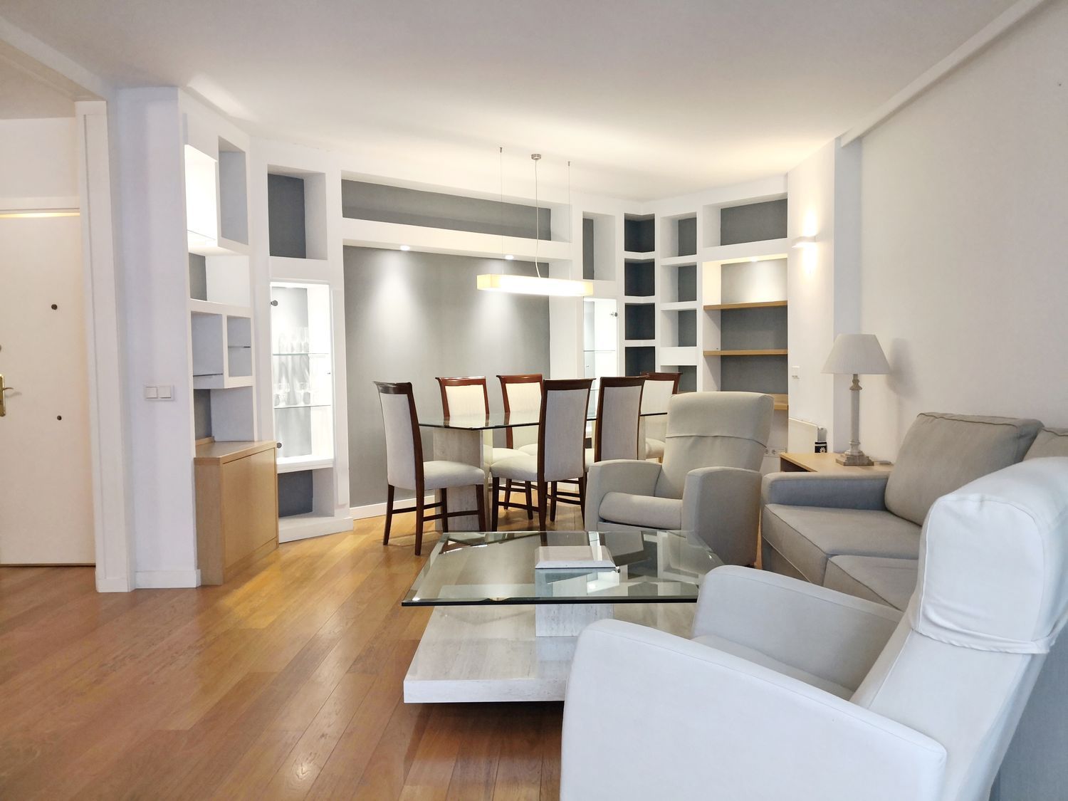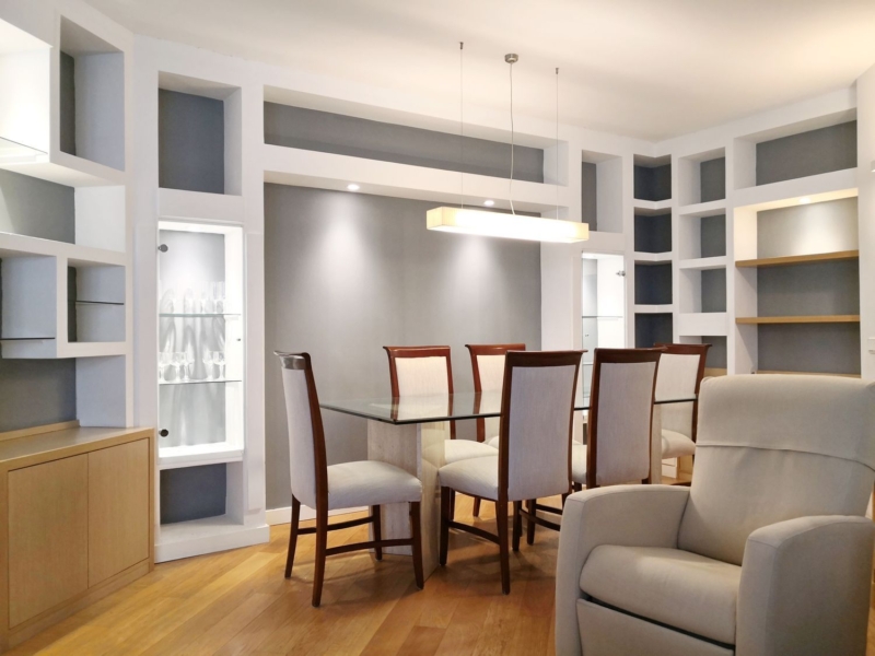 La vivienda tiene una distribución bien aprovechada, se compone de hall de entrada, elegante y amplio salón de dos ambientes con aire acondicionado desde el que se accede a la cocina-office con mobiliario de gran calidad (Schmidt), totalmente equipada con electrodomésticos de última generación de primeras marcas, zona independiente de lavado con tendedero cubierto.