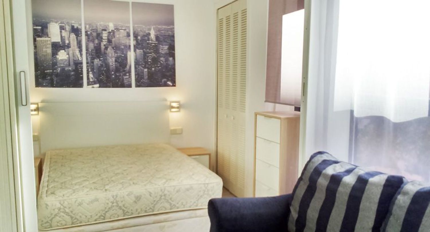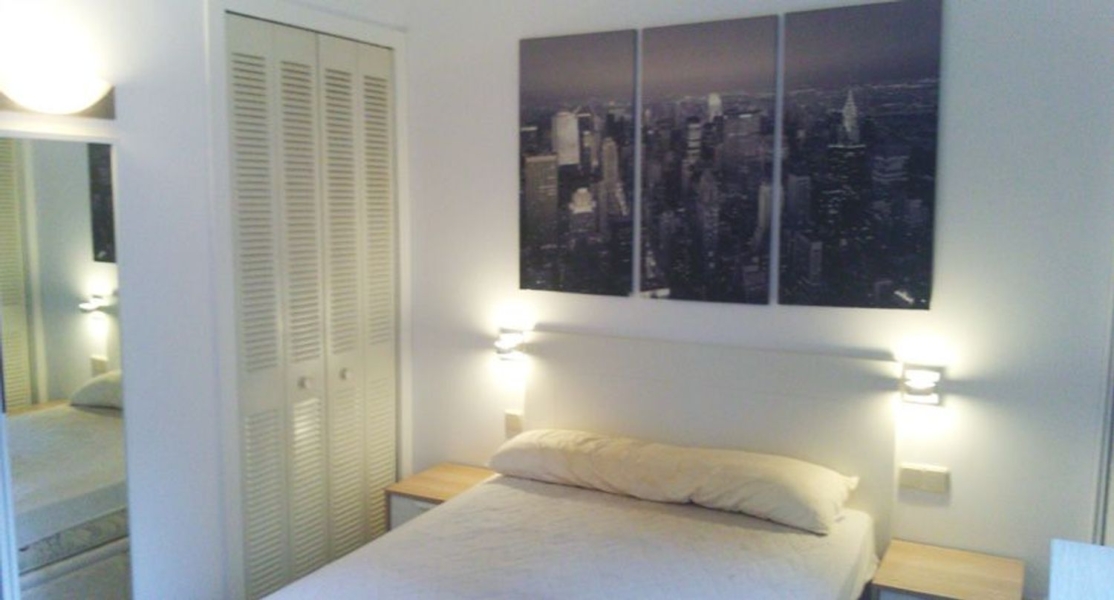 Apartamento amueblado con piscina, 1 dormitorio, 1 baño, lavadora-secadora, cama de 1,35 con arcón, sofá cama, 2 armarios empotrados, Bomba de frío/calor, amplio ventanal en el salón y ventana en el dormitorio. Vistas a la piscina, orientación sureste. También tendedero comunitario. Conserje, 2 ascensores, buen edificio, buen a zona. Se recibe limpiado a fondo y se entrega igual.