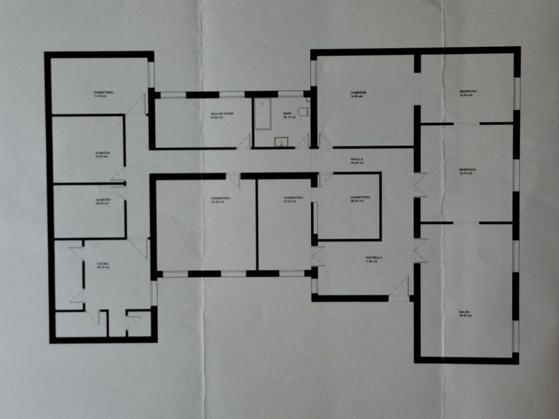 Distribución actual: 6 habitaciones, 3 salones de generosas dimensiones, 2 baños, 2 estancias de almacenaje y cocina con despensa, total 11 espacios personalizables a medida.