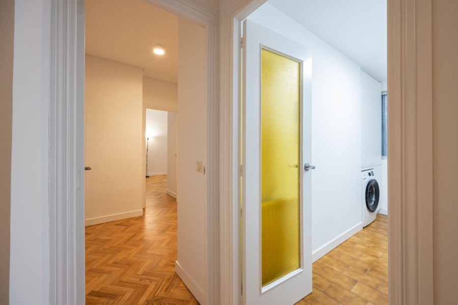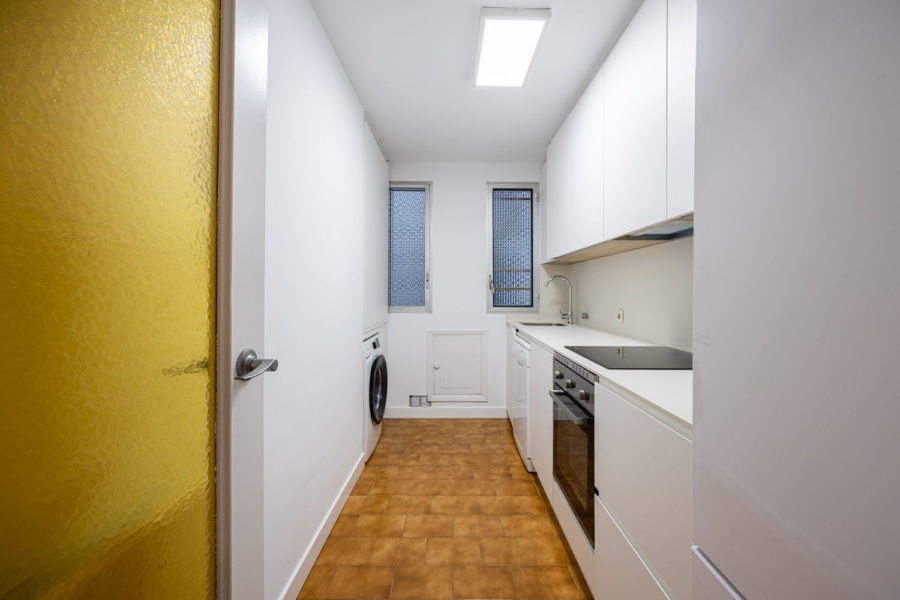 El piso dispone de dos habitaciones con armarios empotrados, garantizando espacio suficiente para todas tus pertenencias. Además, tendrás a tu disposición un baño completo y un aseo adicional en el recibidor. La cocina está completamente equipada con electrodomésticos modernos, la casa se entrega tal y como se ve en las fotografías.