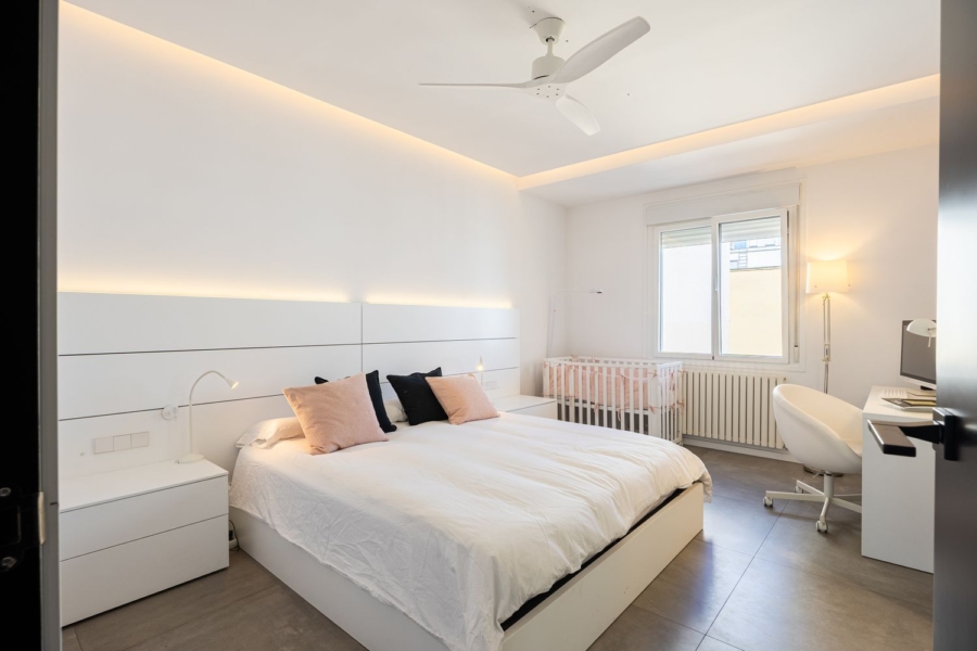 El inmueble dispone de 3 dormitorios dobles ( dos más el de servicio). El dormitorio principal dispone de baño en suite y vestidor cuidando al máximo los detalles para disfrutar de un sueño reparador. Tres baños, todos con ventana. Suelos de baldosa de gres y ventanas oscilobatientes doble cristal climalit con RPT.