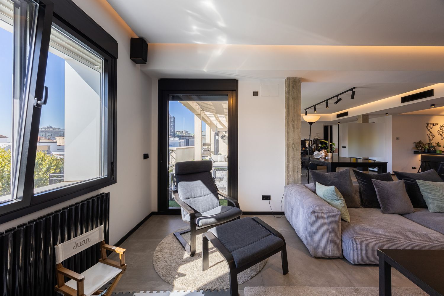Espectacular y único… En venta ático completamente reformado de 170 m2 útiles de vivienda y 40 m2 de terraza. Con trastero y amplia plaza de garaje en Chamberí. Orientación Sur y máxima luminosidad. Un oasis en el centro de la capital.