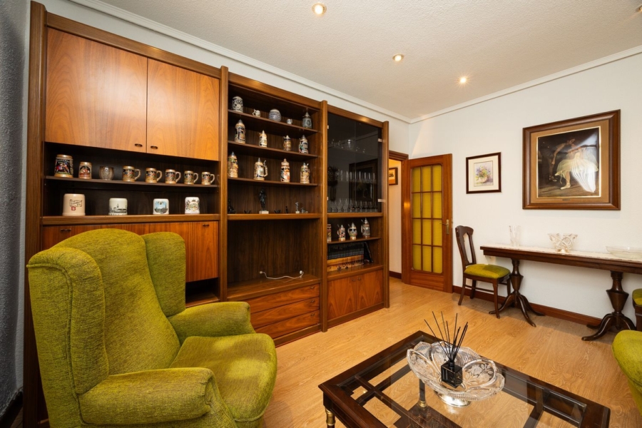 Uno de sus grandes puntos fuertes es la gran capacidad de almacenaje, gracias a sus numerosos armarios y soluciones a medida. La distribución resulta cómoda y funcional para el día a día, y la altura de la vivienda, al tratarse de una sexta planta, aporta sensación de amplitud y una agradable entrada de luz natural. La casa dispone además de calefacción central por radiadores, aire acondicionado en alguna estancia y una carpintería interior de madera que refuerza su carácter elegante y tradicional.