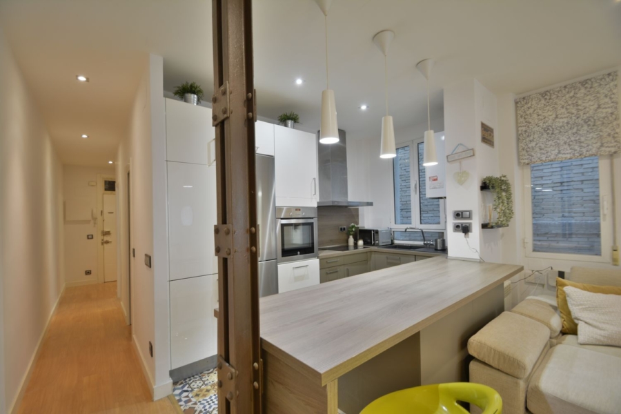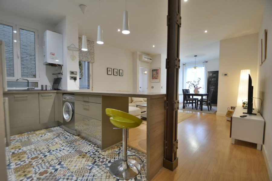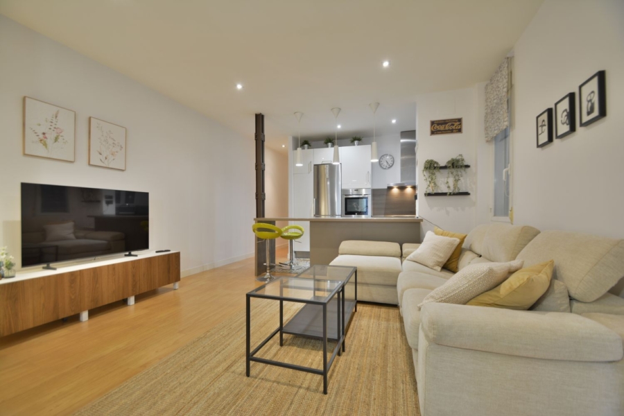Esta vivienda ha sido reformada y se entrega amueblada y equipada con todo lo necesario para vivir. Por su altura y orientación exterior, goza de excelente luminosidad todo el día. Cuenta con 3 dormitorios dobles, 2 de ellos de gran tamaño y el principal con baño en suite. 2 baños completos con plato de ducha y mampara. Salón comedor amplísimo con cocina americana y gran isla central.