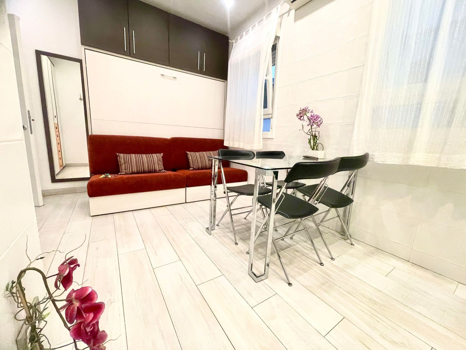 Impecable estudio, reformado, amueblado, 1 baño. Frío / calor. Tv, menaje, cama grande abatibles, cama abatible. Lavavajillas, lavadora-secadora, frigorífico, etc.