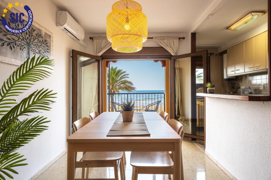 Se ofrece una oportunidad única para adquirir un magnífico apartamento situado en la codiciada primera línea de playa en Port Saplaya. Esta luminosa y espaciosa vivienda combina una ubicación inmejorable con unas vistas espectaculares al mar Mediterráneo, ideal para disfrutar del estilo de vida costero.~Distribución y Características Principales~El apartamento está compuesto por tres dormitorios, garantizando amplitud y comodidad.~Dos de estos dormitorios son dobles, ofreciendo un espacio generoso. Todos los dormitorios cuentan con armarios empotrados, optimizando el espacio de almacenamiento.~Dormitorios: 3 (2 dobles, 1 individual)~Armarios: Empotrados en todos los dormitorios~Dos splits de aires acondicionados de frio/calor~La propiedad destaca por sus dos espacios exteriores, ideales para relajarse y disfrutar del entorno:~Balcones: Dos balcones, ambos con vistas directas al mar.~Zonas Comunes y Servicios~La vivienda dispone de una cocina totalmente equipada, lista para ser utilizada. El amplio comedor se convierte en el corazón del hogar, perfecto para reuniones y comidas familiares, con acceso directo a uno de los balcones.~Para mayor confort, el apartamento cuenta con dos baños completos.~~Ubicación y Vistas~La principal característica de esta propiedad es su situación en primera línea de playa, ofreciendo acceso inmediato a la arena y el mar. Las vistas al mar desde todas las estancias son inigualables, proporcionando un paisaje de postal todos los días.~Port Saplaya, conocida como la “Pequeña Venecia”, es una zona residencial de gran encanto, con puerto deportivo, zonas comerciales, restaurantes y todos los servicios necesarios al alcance de la mano.~~VENTA:~PVP 380.000€. Gastos e impuestos no incluidos en el precio. La compra conlleva impuestos y gastos de formalización para el comprador. A título orientativo se informa que en segundas transmisiones el ITP con carácter general en Valencia es del 10%, pudiendo existir otros tipos impositivos atendiendo a las circunstancias personales del comprador u otras circunstancias previstas legalmente. Base imponible del impuesto el mayor valor entre el precio de compraventa, la tasación o el valor de referencia catastral. En cuanto a los gastos de notaría y registro, en su caso, suelen oscilar aprox; entre 1,5% y 2,5% (aranceles variables según precio, n.º de copias y complejidad). El comprador elige notario. Si el comprador precisase de hipoteca: tasación, condiciones y costes bancarios serán según entidad elegida por el comprador, así como los gastos de gestoría, y cualesquiera otros gastos inherentes a la formalización de la compraventa que legalmente correspondan a la parte compradora, salvo pacto expreso en contrario con el vendedor.~El consumidor tiene, conforme a la normativa vigente, a su disposición información y documentación adicional relativa al inmueble y condiciones de la compraventa, que podrá ser consultada en C/Joaquín Costa 4, bajo 46005 Valencia o urbe2@remax.es.~Honorarios de mediación inmobiliaria a cargo del COMPRADOR: (3% del precio final de venta más IVA (21%), salvo otro pacto.); y de VENDEDOR (según acuerdo con el mismo). ~Se informa al consumidor que la agencia actúa como intermediaria inmobiliaria en la operación, estando cualquier eventual compraventa y sus condiciones sujeta a la aceptación expresa del propietario-vendedor y a la posterior formalización del correspondiente contrato.~